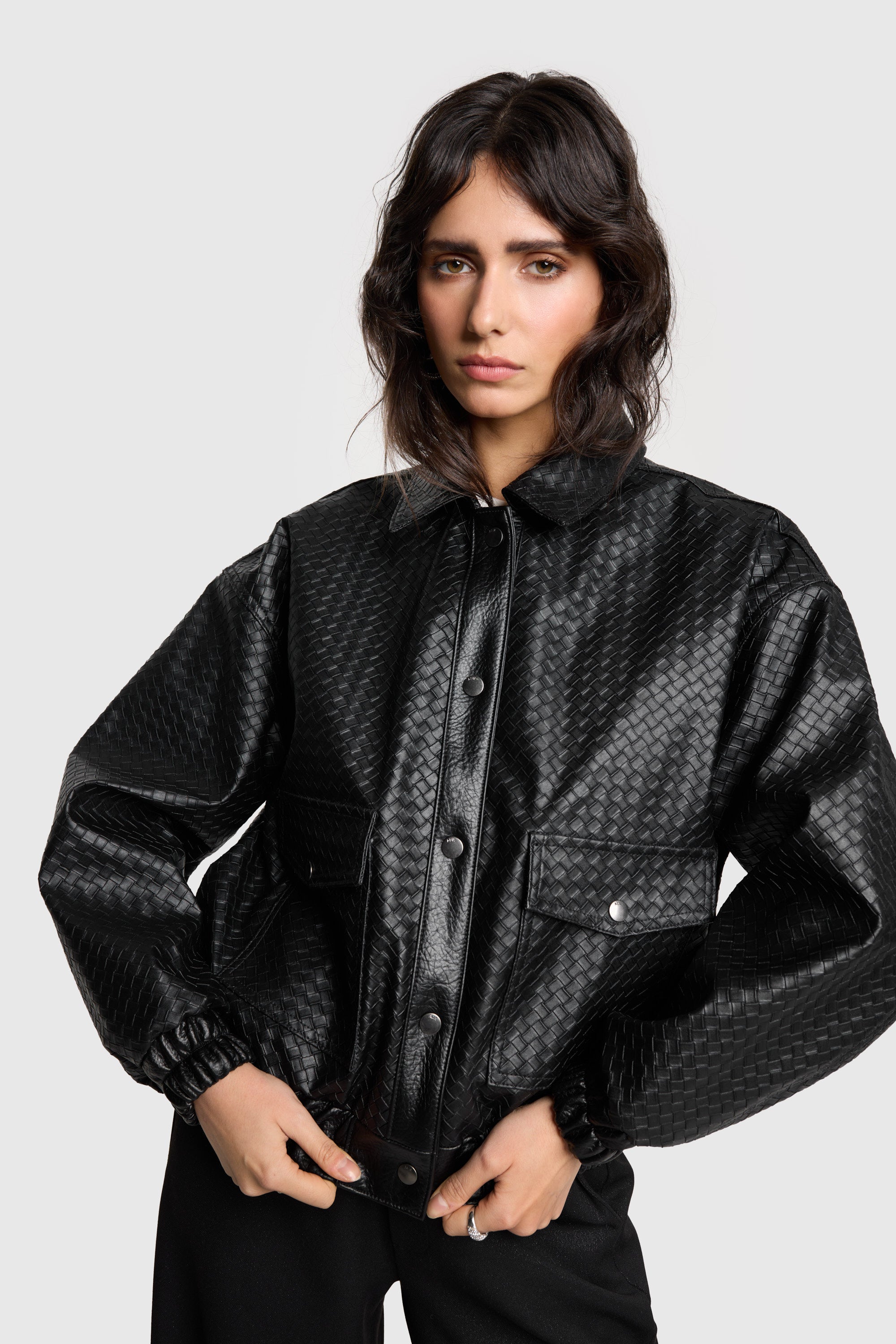 Velvet leather bomber